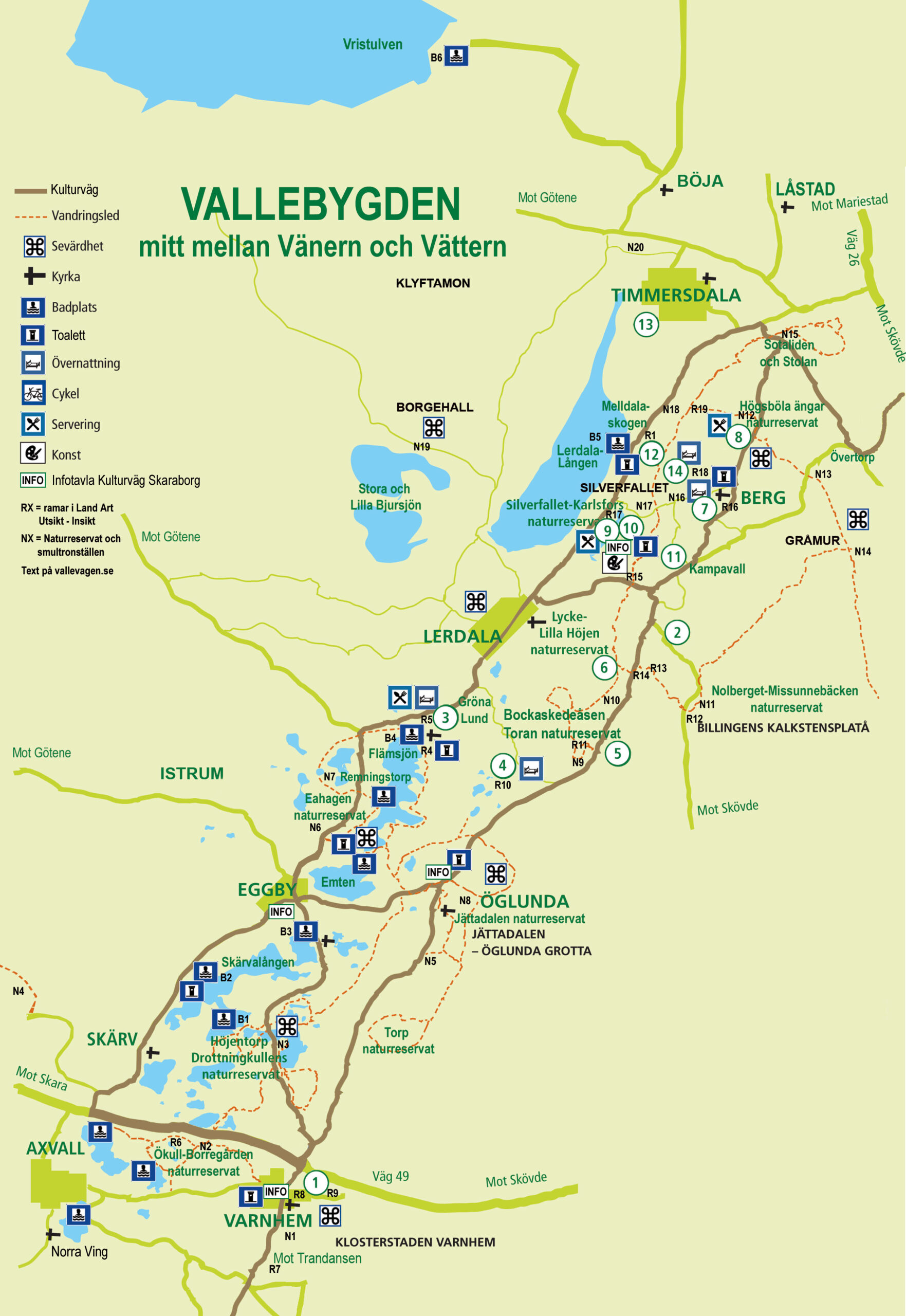 Du hittar våra broschyrer i brevlådor märkta med Vallevägens V vid naturreservat och andra platser, och hos våra besöksmål som du ser på kartan. Med broschyren i din hand kan du också delta i årets tävling. Fina priser utlovas.