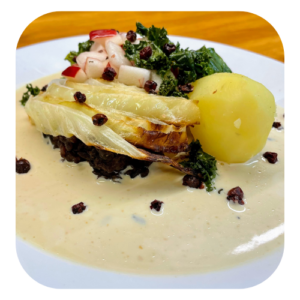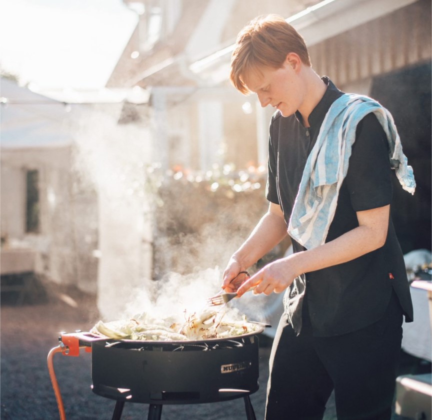 Grunden i min verksamhet är hållbarhet. Jag lagar både vegetariskt, veganskt och rätter med kött – men alltid med klimatet i åtanke. Kött som serveras är i princip uteslutande lamm, nöt och fläsk från lokala producenter, och menyerna formas efter säsong och tillgång. För mig är det viktigt att visa att klimatsmart mat inte är en kompromiss, utan en smakupplevelse.