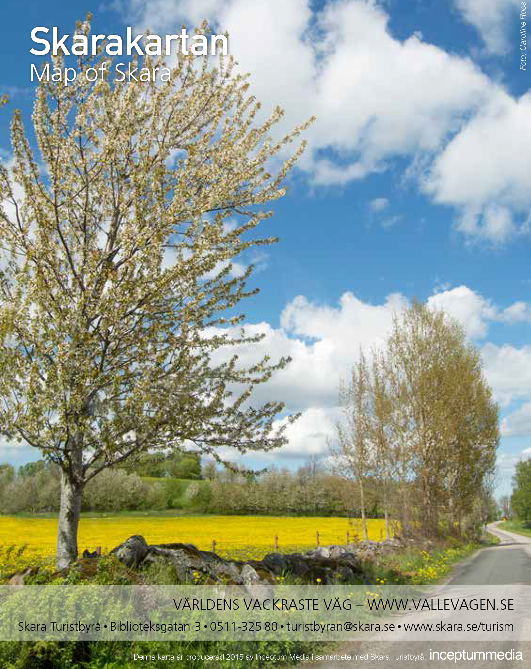 Vallevägen – både hemsidesadressen och fotot – pryder omslaget på Skara-kartan som Turistbyrån i Skara gett ut.